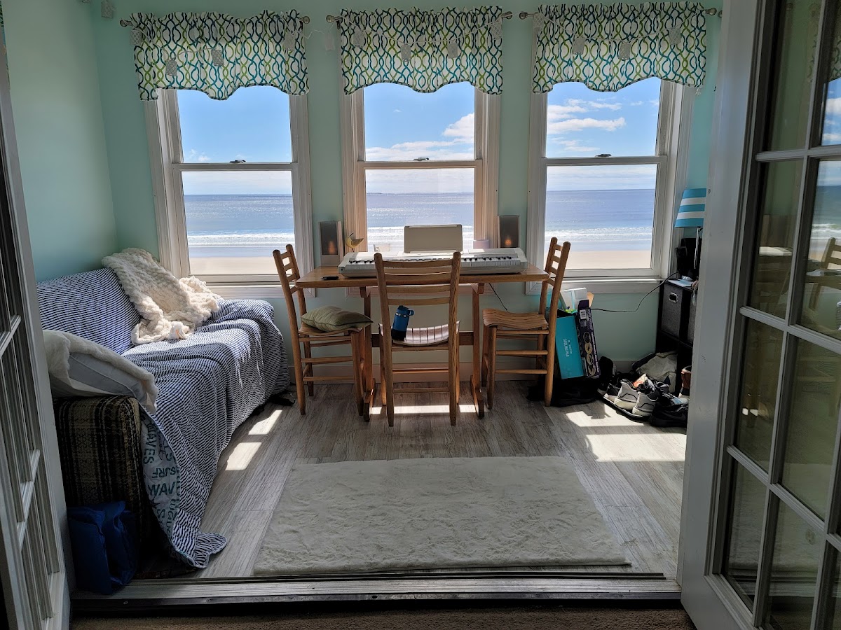 Haven't checked out yet and so far loving our stay, will update after check out, here are some views Update, checked out today. Dont worry about towels, they provide so many and easy to receive more, just leave the dirty ones in the basket providedon the deck and they deliver new full basket. Same with your trash, they provide a large barreling deck, I was easily able to take our bag out onto deck into the large barrel and they'd remove like magical elves. On Wednesday they come with more trash bags and paper towels. The cabin was small but you were never no more than 200 steps from the waters edge. The view and beach is incredible. The bathroom is small but you adjust. Shower only, keep in mind if kids on visit. Bedrooms small too but closets and small built in bureau in each. Small common area and galley kitchen but we spent so much time outdoors it didn't matter plus the enclosed screened porch overlooking ocean makes it feel larger, great views from futon too. Great spot on beach. Not too crowded and 1 mile walk to pier and just 15 minute drive to Portland too. We loved our week here. 4 to 5 adults fit cozy but we hope we can come back next year, just note to self, a larger space necessary for our family size.